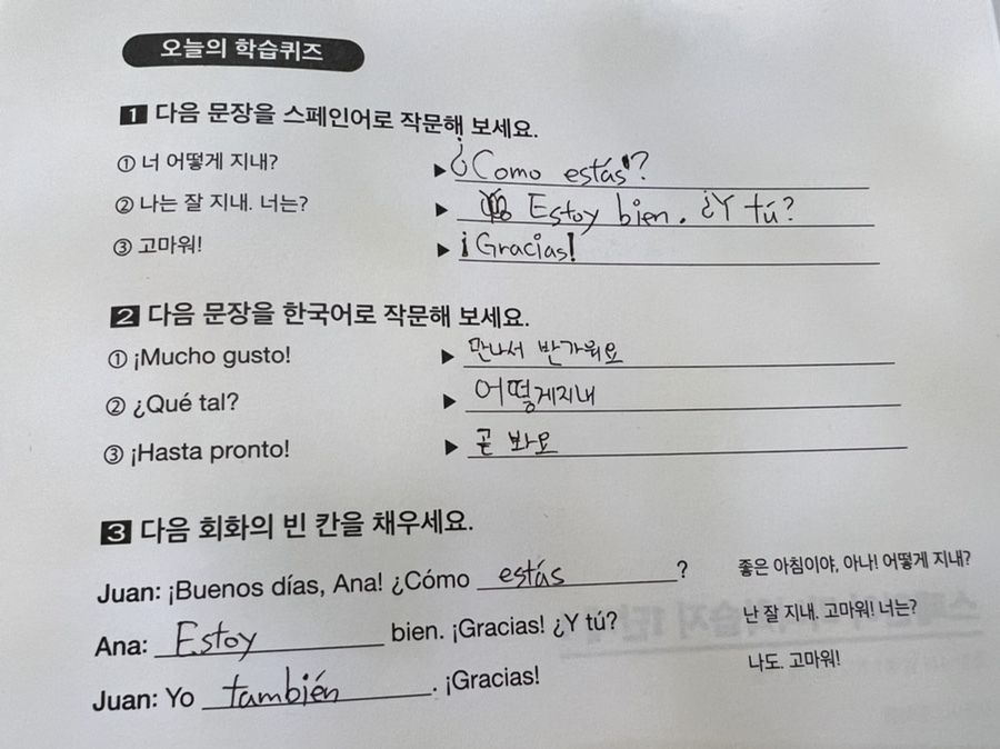 부담스러운 과한 문법이나 암기할 어휘가 많은 경우 아무래도 학습자가 꾸준히 학습을 이어나가는데에 부담이 되는 경우가 종종 발생합니다. 그런 점에서 미니학습지의 경우 문법에서 사용빈도가 높은 최소한의 문법/어휘를 다루면서 단계단계에서 이를 조금씩 심화적으로 반복해서 배우는 구성을 가지고 있습니다. 이점은 실제 평균수준의 학습력과 꾸준함을 가진 학습자의 관점에서 어떻게하면 학습의 지속성과 효율을 높일 수 있을 것인가에 대한 구성상 배려가 돋보이는 부분입니다.