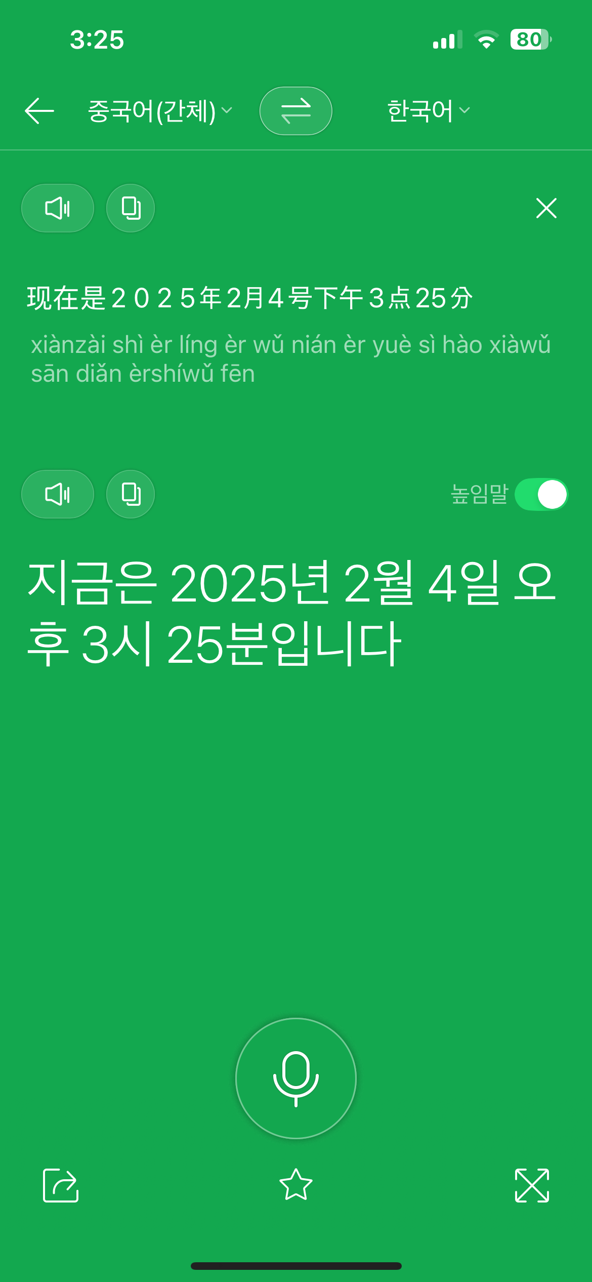 사실 어휘야 이전에 잠깐 중국어 공부를 시도하면서 어느 정도 까먹지 않고 기억하고 있었지만 당시에는 아무리 파파고에 말해도 엉뚱한 결과가 나오곤 했는데 성조를 정확하게 지키려 신경을 쓰니 드디어 파파고가 나의 미천한 중국어를 알아먹기 시작했다.