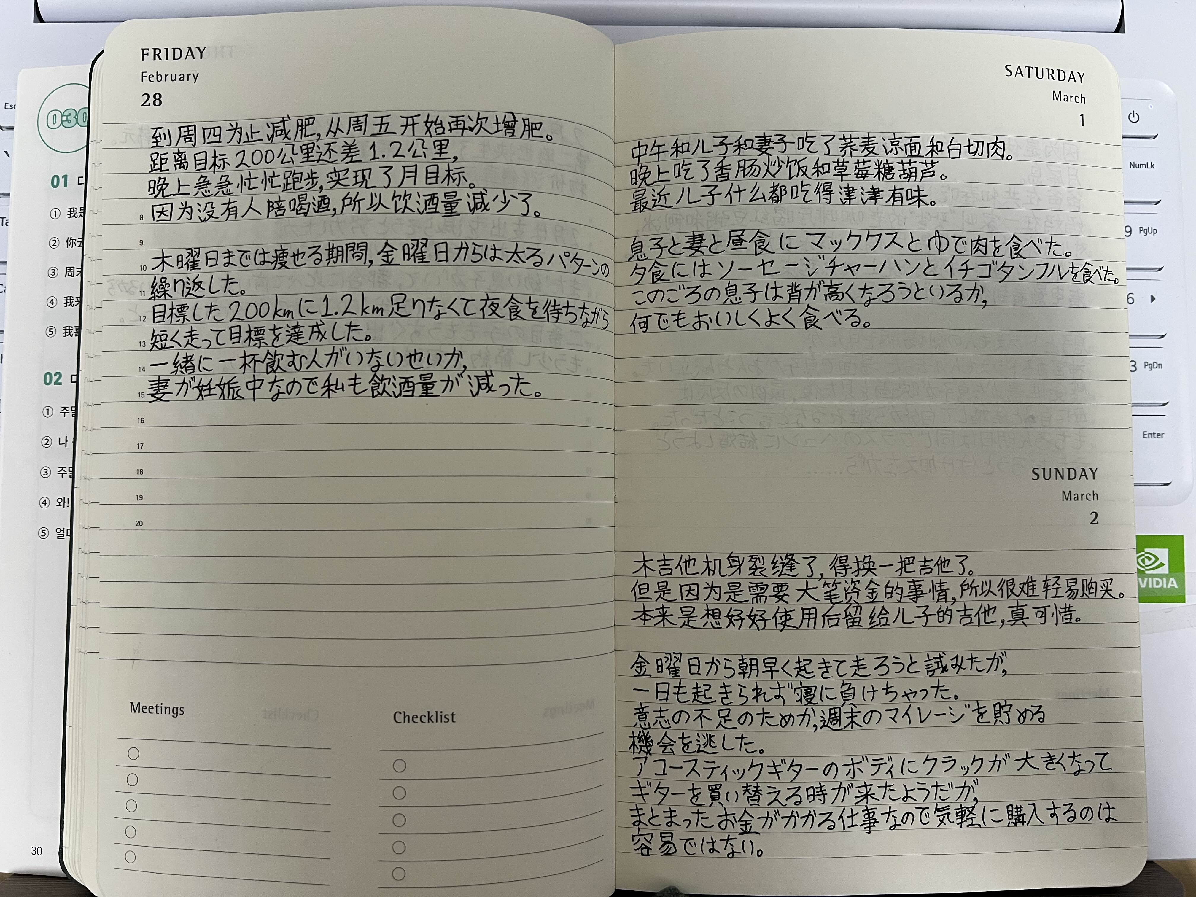 최근 나의 관심사인 "외국어로 3 문장 일기 쓰기", "매달 10권의 책 읽기", "매달 200km씩 달리기"를 즐겨하는 마니아다란 표현이 가능해졌다. 跑步(러닝),读书(독서),写日记(일기 쓰기)에 이어 学汉语(중국어 공부하기)라는 흥미로운 취미가 생긴것인지도.